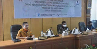 MAMUJU, FMS - Dinas Kominfo, Persandian dan Statistik Sulbar menggelar rapat koordinasi (rakor) penyelenggaraan daerah dalam angka tahun 2020, yang berlangsung di ruang meeting lantai 2 Kantor Gubernur Sulbar, Kamis (11/6).